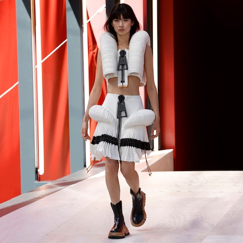 Nicolas Ghesquière ศิลปินผู้สะท้อนจิตวิญญาณแห่งความล้ำยุคสไตล์อาวองการ์ดของเมซง ยังคงอยู่บนเส้นทางแห่งการสร้างสรรค์ต่อไปหลังจากร่วมงานกับหลุยส์ วิตตองมานานถึง 10 ปี ผ่านการแสดงศิลปะที่เล่าผ่านภาษาความเป็นสุภาพสตรีอันเป็นลายเซ็นประจำตัว อาร์ทิสติกไดเรกเตอร์แผนกคอลเลคชั่นสุภาพสตรีผู้นี้ได้สร้างแรงบันดาลใจผ่านงานออกแบบกระเป๋ารุ่น Petite Malle, GO-14 และ LV Twist สุดไอคอนิกไปจนถึงสนีกเกอร์รุ่น Archlight สุดโฉบเฉี่ยว ซึ่งเปิดตัวในงานแฟชั่นโชว์ที่ผ่านมา เพื่อตอกย้ำถึงทศวรรษแห่งการรังสรรค์ผลงานสำคัญอันเป็นเอกลักษณ์