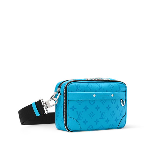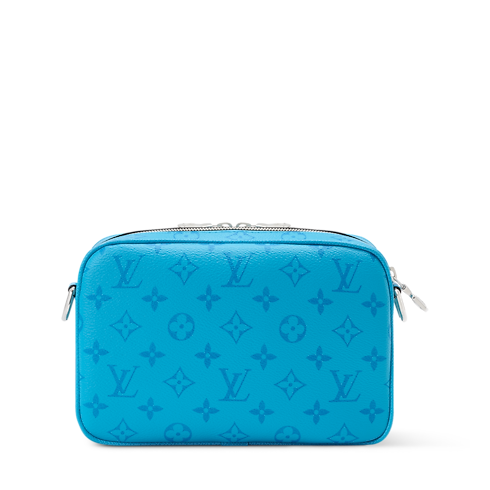 กระเป๋าแมสเซนเจอร์รุ่น Alpha ขนาดกะทัดรัดสไตล์วินเทจคล้ายกระเป๋าทรง camera bag รังสรรค์จาก Monogram แคนวาสสีสันสดใสผสานหนังคาวไฮด์ Taigarama จับคู่โทนสีเดียวกันเรียบหรู มาพร้อมสายสะพายกว้างสีดำลาย Monogram มอบสัมผัสร่วมสมัยมีระดับ ช่องแบ่งกระเป๋ามีซิป 2 ช่องจัดเก็บสิ่งของจำเป็นได้ปลอดภัย ตกแต่งหมุดโลหะบริเวณมุมกระเป๋าสะท้อนตำนานการผลิตทรังก์ของเมซง
