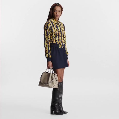 กระเป๋ารุ่น Bella Tote รังสรรค์จากหนังลูกวัว Mahina สัมผัสนุ่มโทนสีเทา Galet เรียบหรูสง่างาม แต่งดีเทลจับจีบอย่างพิถีพิถัน เสริมความโดดเด่นด้วยสายโซ่ที่เปล่งประกายราวอัญมณี ผสานดีไซน์ของกระเป๋าทรงบัคเก็ตสุดคลาสสิกเข้ากับกระเป๋าโท้ทที่มีพื้นที่สำหรับจัดเก็บสิ่งของอย่างลงตัว กระเป๋ามีสไตล์เหมาะสำหรับการใช้งานในชีวิตประจำวัน
