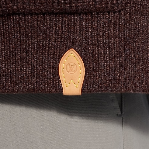เสื้อคาร์ดิแกนผ้าแคชเมียร์สุดคลาสสิกรังสรรค์จากผ้านิตถักลายริบสีน้ำตาล chocolate เรียบหรู สะท้อนผิวสัมผัสและโครงสร้างพิถีพิถัน เหมาะกับสวมเลเยอร์ช่วงเปลี่ยนฤดู เติมดีเทลหรูด้วยกระดุมเขาสัตว์และแถบหนัง VVN บริเวณชายเสื้อด้านล่างซ้ายสื่อถึงมรดกด้านการเดินทางของเมซง