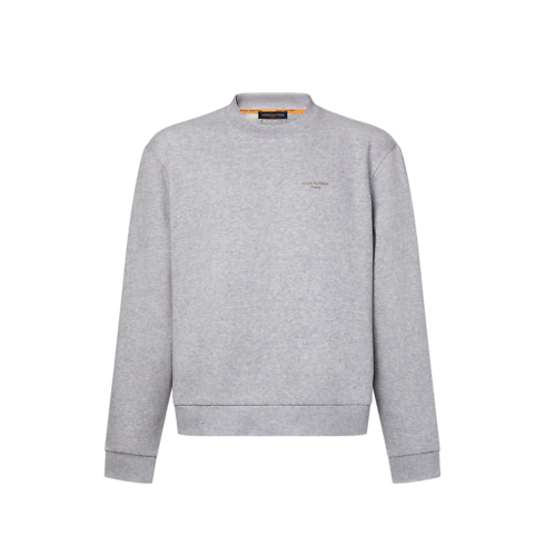 ไอเท็มสไตล์แคชวลที่ต้องมีติดตู้เสื้อผ้า เสื้อสเวตเตอร์คอตตอนบริสุทธิ์มอบผิวสัมผัสนุ่มมาในโทนสีเทา เสริมดีเทลสีม่วงอย่างแยบยล แต่งผ้าริบที่คอเสื้อ ข้อมือ และชายเสื้อ เพื่อความสบายสูงสุด บนหน้าอกตกแต่งสัญลักษณ์ Louis Vuitton Paris สีทอง ส่วนด้านหลังประดับแพตช์หนัง Marque L.Vuitton Déposée สะท้อนความประณีตเหนือระดับ