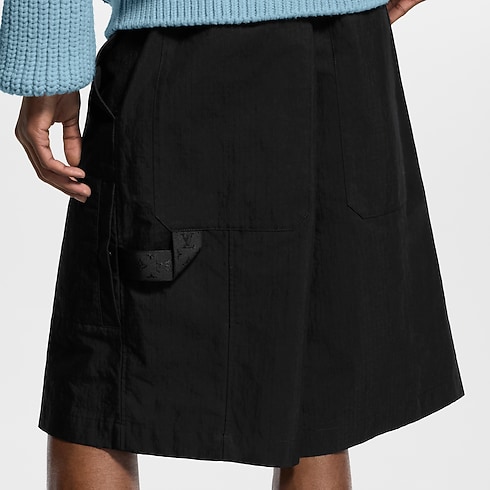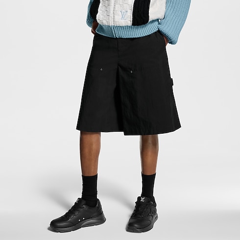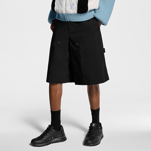 กางเกงขาสั้นคาร์โก้สีดำจากผ้าคอตตอนเทคนิคอลถักทอแบบ Ripstop โดดเด่นด้วยรูปทรงสวมใส่สบาย โปร่งเบา เหมาะสำหรับฤดูร้อน เติมแต่งรายละเอียดสไตล์ยูทิลิทารีด้วยกระเป๋าเหนือเข่าประดับหมุด Monogram Flower อย่างประณีต พร้อมห่วงคล้องค้อนผ้ากรอสเกรนลาย Monogram ที่กระเป๋าซ้ายด้านหลัง จับคู่กับไอเท็มสีดำอื่น ๆ จากคอลเลกชันสร้างลุคซิตี้สุดโมเดิร์น