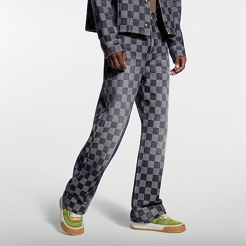 กางเกงเดนิม Skate สไตล์แคชวลรุ่นนี้โดดเด่นด้วยลายกราฟิก Damier ที่ถักทอลงบนเนื้อผ้าทั่วทั้งตัว ผลิตจากคอตตอนที่ผ่านการรับรองคุณภาพ ซึ่งผ่านกระบวนการซักและแปรงให้สัมผัสนุ่มในสไตล์วินเทจ ตกแต่งด้วยป้าย jacqueron หนังนูบัคลาย Mini Damier บริเวณเอวด้านหลังอย่างมีเอกลักษณ์ สามารถจับคู่กับเสื้อเชิ้ตเซ็ตเดียวกัน เพื่อเติมเต็มสไตล์ที่เหนือระดับ
