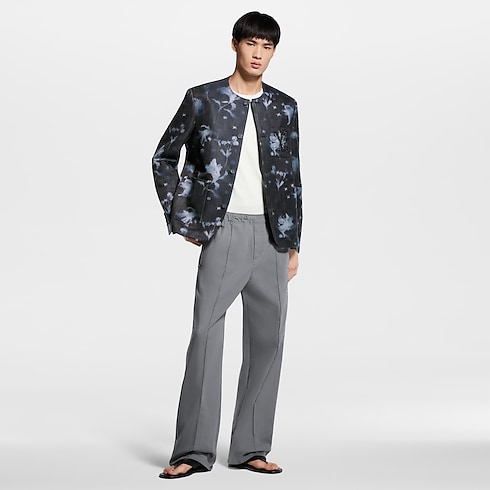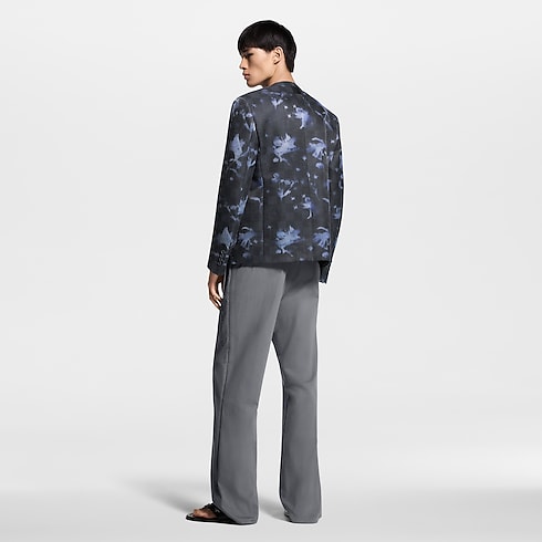 เสื้อแจ็คเก็ตไร้ปกผ้าคอตตอนผสมผ้าไหมต้อนรับฤดูร้อน นำเสนอลูกเล่นเออร์เบินให้ลวดลายดอกไม้สดใสโดดเด่นประจำคอลเลกชัน ดีไซน์ลึกลับมีระดับผสาน LV Flower X-Ray เทคนิคแจ็คการ์ดเข้ากับธีมสัญลักษณ์ Damier เนื้อสัมผัสนุ่ม กระเป๋าอกปักลูกปัดในโทนสีเดียวกันกับลายปักอักษรย่อ LV อันเป็นเอกลักษณ์เมซง เสื้อแจ็คเก็ตคอกลมแต่งกระดุมหุ้มผ้าเติมเต็มสัมผัสร่วมสมัยเงางาม