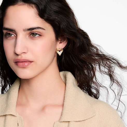 ต่างหู Essential Love ได้แรงบันดาลใจจากความมหัศจรรย์ของความรักและความห่วงใย ผสมผสานความสง่างามสะดุดตาเข้ากับสัญลักษณ์หลุยส์ วิตตองได้อย่างแยบยล ต่างหูดีไซน์โดดเด่นประกอบด้วยรูปทรงหัวใจที่รังสรรค์จากโลหะสีทอง ที่ผสานเข้ากับสัญลักษณ์ตัวอักษร V อันเป็นเอกลักษณ์ของเมซง พร้อมประดับด้วยไรน์สโตนระยิบระยับ ต่างหูดีไซน์งดงามสวมใส่ง่ายช่วยเติมเต็มเสน่ห์แห่งความโรแมนติกให้กับทุกลุค