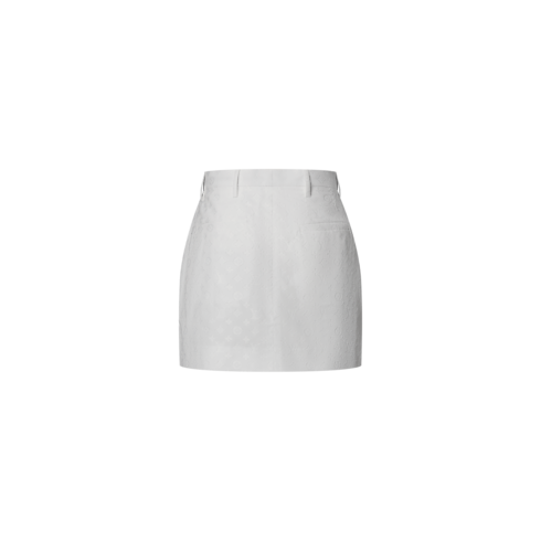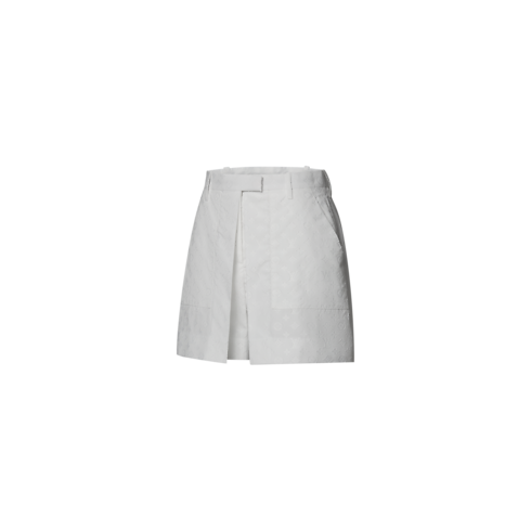 กางเกงขาสั้นแบบไฮบริดผ้าคอตตอนป๊อปลินเนื้อบางเบาลาย Monogram เทคนิค Fil Coupé ช่วงเอวแต่งเลเยอร์ด้านบนให้ลุคคล้ายกระโปรงทรงเอเอฟเฟ็กต์ Trompe L'Oeil ทันสมัย แต่งแถบปิดกระดุมและห่วงเข็มขัดที่ขอบเอวเพิ่มสัมผัสเทเลอร์เรียบหรู คอมพลีตลุคด้วยกระเป๋าหน้าและกระเป๋าหลังอย่างสมบูรณ์แบบ