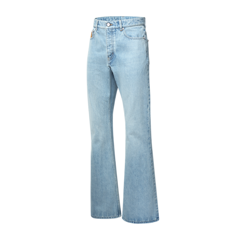 กางเกงยีนส์ผ้าเดนิมญี่ปุ่นคุณภาพพรีเมียมทรงขาบาน ยกระดับไอเท็มคลาสสิกที่ต้องมีติดตู้เสื้อผ้าด้วยความเชี่ยวชาญด้านการตัดเย็บของหลุยส์ วิตตอง สีน้ำเงินอ่อนฟอกคลาสสิกและรูปทรงที่โดดเด่นจับคู่แมตช์ลงตัวกับทุกลุค ตกแต่งดีเทลสุดเอ็กซ์คลูซีฟประกอบด้วยการเดินตะเข็บแบบ top stitch โทนสีน้ำตาล Tobacco ลายปักสัญลักษณ์ LV บนกระเป๋าหลัง และแพตช์หนังนูบัคประดับสัญลักษณ์บนกระเป๋าเล็กและขอบเอว