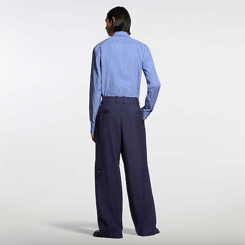 กางเกงโมแฮร์จากคอลเลกชัน Spring-Summer 2026 มาพร้อมรายละเอียดการพับด้านหน้าที่ช่วยเพิ่มความอ่อนช้อยให้กับสรีระ สีม่วง Indigo อันโดดเด่นได้รับแรงบันดาลใจจากศิลปะอินเดียที่แทรกซึมอยู่ในทุกชิ้นงานของคอลเลกชัน สามารถสวมคู่กับเสื้อแจ็คเก็ตกระดุมสองแถวเข้าชุด จะได้ชุดสูทที่สะท้อนความหรูหราและความสง่างามแห่งสไตล์ Indian Dandy ได้อย่างสมบูรณ์แบบ