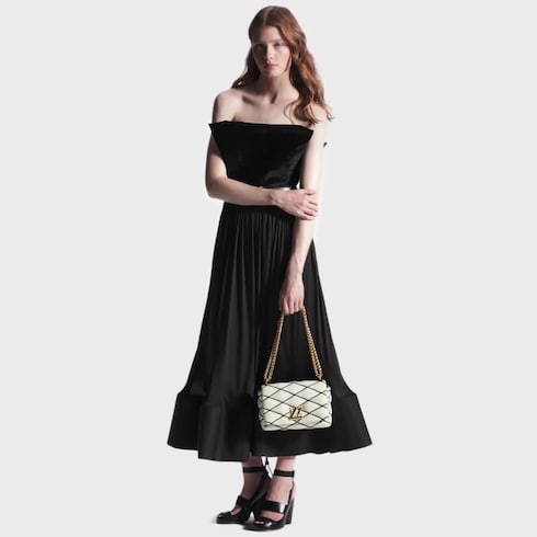 กระเป๋ารุ่น GO-14 MM รังสรรค์จากหนังแกะสัมผัสนุ่มเหนือระดับในดีไซน์ควิลต์อันเป็นเอกลักษณ์เช่นเดียวกับการบุด้านในทรังก์อันเป็นตำนานของเมซง ประดับตัวล็อก LV Twist สีทองเงางาม มาพร้อมฟังก์ชันการใช้งานครบครัน ทั้งการถือหูจับด้านบนและสายโซ่ปรับเลื่อนได้ หรือปรับหูจับให้เป็นแผ่นหนังรองไหล่ยามใช้งานสายโซ่ทั้งสะพายไหล่และสะพายเฉียงตามต้องการ