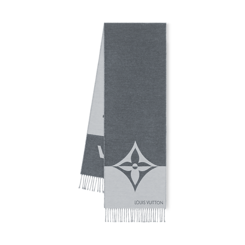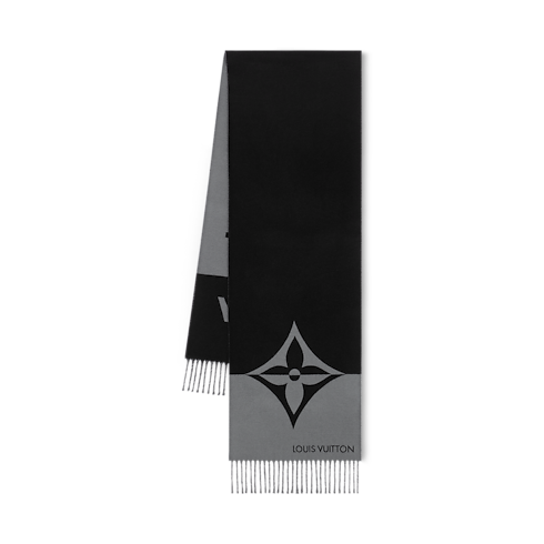 ผ้าพันคอรุ่น Graphic Dual ดีไซน์ผืนยาวแคบสองโทนสี โดดเด่นด้วยรายละเอียดสะดุดตา ปลายด้านหนึ่งประดับอักษรย่อ LV ขนาดใหญ่ แบ่งครึ่งตามแนวนอนด้วยสีเขียว Olive และสีเบจ Cream อีกด้านตกแต่งสัญลักษณ์ Monogram Flower ซึ่งใช้เทคนิคการจับคู่สีแบบเดียวกัน แต่งริ้วชายผ้าเพิ่มสัมผัสคลาสสิก