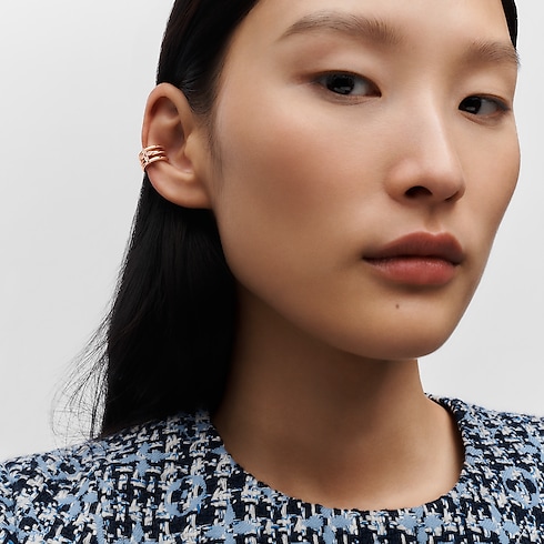 เอียร์คัฟฟ์ Idylle Blossom พิงค์โกลด์ 18K คือผลงานที่เฉลิมฉลองความงดงามของ Monogram Flower กลีบดอกไม้ 4 กลีบประดับเพชรเจียระไนแบบ Brilliant-cut 8 เม็ด เปล่งประกายบนแถบต่างหูพิงค์โกลด์ 3 เส้น มิกซ์แอนด์แมตช์ได้หลายสไตล์ ไม่ว่าจะสวมชิ้นเดียวหรือสวมคู่กับต่างหูสตั๊ดและต่างหูแบบห่วงก็ดูมีระดับ