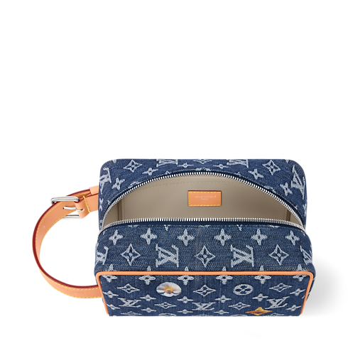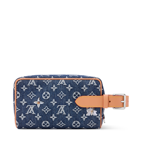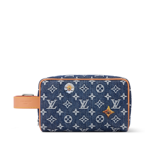 กระเป๋ารุ่น Locker Dopp Kit ถ่ายทอดกลิ่นอายแห่งฤดูใบไม้ผลิผ่าน Monogram เดนิม ปักลายดอกไม้ประณีต เหมาะกับการเก็บของใช้จำเป็นสำหรับกรูมมิ่ง มีซิปเปิดได้กว้างและซับในผ้าที่สามารถซักทำความสะอาดได้ หูจับหนังคาวไฮด์มาพร้อมบัคเคิลสีเงินที่สามารถปรับระดับเพื่อความสบายและความสะดวกได้