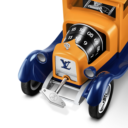 นาฬิกาตั้งโต๊ะรุ่น Louis Vuitton Camionnette สะท้อนถึงความมุ่งมั่นของเมซงในการแสวงหาความเป็นเลิศทั้งด้านการบริการและงานฝีมืออันประณีต ผลงานที่เปี่ยมด้วยบันดาลใจจากยานยนตร์ส่งของในตำนานของหลุยส์ วิตตอง พร้อมตกแต่งด้วยที่อยู่อันเป็นสัญลักษณ์จากประวัติศาสตร์ของเมซง ถ่ายทอดศิลปะแห่งการเดินทางได้อย่างสมบูรณ์แบบ ผลงานลิมิเต็ดอิดิชันชิ้นนี้ มอบนิยามใหม่ของนาฬิกาสำหรับนักสะสมด้วยดีไซน์และความซับซ้อนทางเทคนิคเหนือระดับ ตกแต่งด้วยเฉดสีเหลือง Saffron อันเป็นสัญลักษณ์ของหลุยส์ วิตตอง ยานยนต์โดดเด่นด้วยจานหมุนคู่ที่ติดตั้งไว้ด้านหน้า ที่แสดงเวลาอย่างเที่ยงตรง พร้อมเผยให้เห็นกลไกเครื่องยนต์อันทรงพลัง ผสานทรังก์ลาย Monogram ขนาดจิ๋วที่ด้านหลัง เพื่อซ่อนกุญแจไขลานของนาฬิกาไว้อย่างแนบเนียน