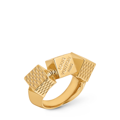 รูปทรงเหลี่ยมของ Pateki เกมต่อปริศนาที่ Gaston Vuitton คิดค้นขึ้นในปี 1932 ถ่ายทอดอย่างวิจิตรสู่แหวน LV Cube ที่เปี่ยมด้วยความหรูหราและความสนุกสนาน ลูกบาศก์โลหะสีทองทั้งสามสลักลายเส้นที่สะท้อนถึง Damier แคนวาสอันไอคอนิกอย่างประณีตงดงาม ขณะที่สัญลักษณ์ Louis Vuitton Paris เติมเต็มเอกลักษณ์ของเมซงให้แหวนที่เปี่ยมด้วยเสน่ห์เหนือระดับ