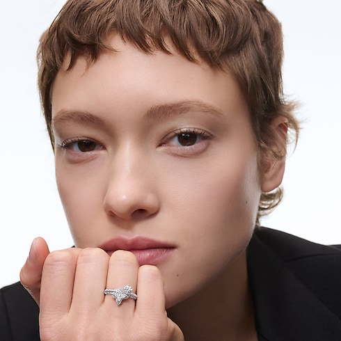 แหวนคู่ LV Diamonds เพชรเจียระไนทรงกลม สะท้อนความรู้และความชำนาญในงานจิวเวลรี่อันหรูหราเหนือระดับของเมซง ตัวเรือนไวท์โกลด์ 18K โดดเด่นด้วย Monogram LV Star ที่ฝังประดับเพชรแบบ Pavé ขับเน้นประกายอันงดงามวิจิตร ตัวเรือนที่โอบอุ้มเพชรเม็ดกลางอันเป็นเอกลักษณ์ได้แรงบันดาลใจจากดอกไม้สไตล์ลาย Monogram ในตำนานของหลุยส์ วิตตอง พร้อมประดับเพชรน้ำงามบนตัวเรือนเพื่อเพิ่มประกายระยิบระยับ ด้วยเสน่ห์ที่เปี่ยมชีวิตชีวาและนำมามิกซ์แอนด์แมตช์ได้ง่าย แหวนที่งดงามวงนี้เหมาะสำหรับมอบเป็นของขวัญชิ้นพิเศษที่น่าจดจำตลอดกาล