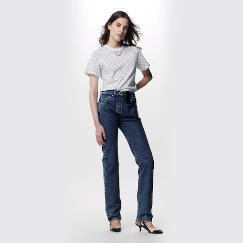 เสื้อยืดผ้าคอตตอนเจอร์ซีย์เนื้อนุ่มจากแคปซูลคอลเล็คชั่น LV Escale Summer พิมพ์ลาย Monogram สุดไอคอนิกด้านในตัวเสื้อเพื่อให้เกิดลูกเล่นลายด้านนอกแบบสีอ่อนจาง โดดเด่นด้วยแขนเสื้อสั้นสวมสบาย ตกแต่งคอเสื้อด้วยรายละเอียดสายโซ่เพิ่มความสดใส มอบความมีสไตล์ให้ลุคแคชวลในฤดูร้อนนี้