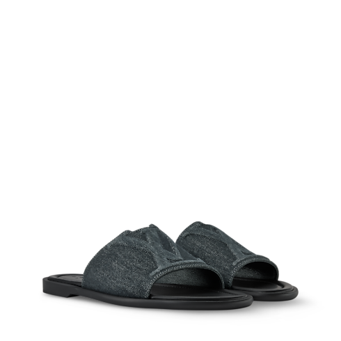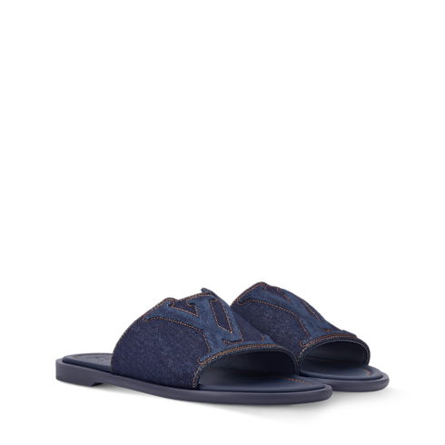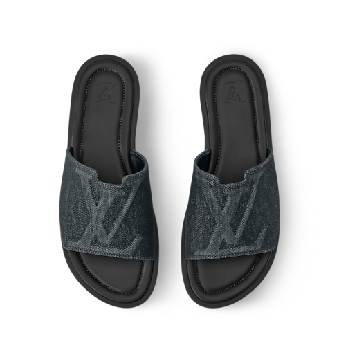 รองเท้าสวมเปิดส้นรุ่น LV Portofino ปรับดีไซน์ใหม่ด้วยสีน้ำเงิน Denim มอบลุคแคชวลสุดชิคสำหรับวันอากาศดีในฤดูร้อน สายคาดแบบกว้างด้านหน้าโดดเด่นสะดุดตาด้วยดีไซน์อักษรย่อ LV ผสานขอบที่คอนทราสต์ตะเข็บพิถีพิถัน พื้นรองเท้ายางด้านนอกน้ำหนักเบาเสริมสัมผัสนุ่มทุกย่างก้าว