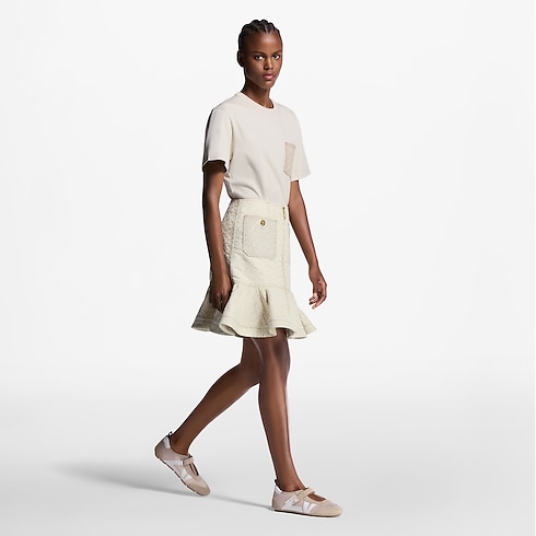 รองเท้าแมรี่เจนรุ่น LV Sneakerina รังสรรค์จากผ้าซาตินเทคนิคอลและหนังกลับลูกวัวเนื้อนุ่มเบาสบาย ผสานดีไซน์ความสวมสบายของรองเท้าผ้าใบเข้ากับสไตล์อันสง่างามของรองเท้าบัลเลต์ส้นสูงอย่างลงตัว มาพร้อมสายคาดแบบเวลโคร ตกแต่ง Monogram Flower สามารถปรับระดับได้ โดดเด่นด้วยดีเทลสัญลักษณ์ของเมซง ได้แก่ หลุยส์ วิตตอง และอักษรย่อ LV ที่ด้านข้าง