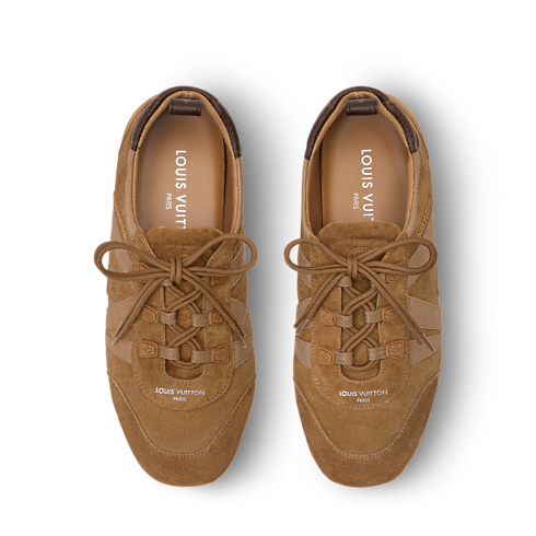รองเท้ารุ่น LV Sneakerinaรังสรรค์จากหนังกลับลูกวัว มอบสัมผัสหรูหราด้วยโทนสีเดียวที่เผยผิวสัมผัสที่แตกต่างกันระหว่างหนังกลับลูกวัวที่นุ่มดุจกำมะหยี่และหนังเรียบหรู บริเวณโลโก้ LV ด้านข้างผสมผสานความสบายของรองเท้าสนีกเกอร์กับความสง่างามของรองเท้าบัลเลต์ ด้วยเทคนิคการตัดเย็บแบบ sacchetto เพื่อความเบาและยืดหยุ่นสูงสุด