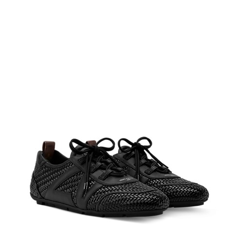 สำหรับแฟชั่นโชว์คอลเลกชันประจำฤดูกาล Spring-Summer 2026 ของหลุยส์ วิตตอง อาร์ทิสติกไดเร็กเตอร์ของผู้หญิง Nicolas Ghesquière รังสรรค์รองเท้ารุ่น LV Sneakerina ขึ้นใหม่ เพื่อเน้นย้ำถึงงานฝีมืออันประณีตของเมซง รังสรรค์จากหนังแกะถักทออย่างวิจิตร ประดับด้วยสัญลักษณ์ LV หนังด้านข้าง มาพร้อมพื้นรองเท้ายางด้านนอก และห่วงด้านหลังที่ตกแต่งด้วย Monogram แคนวาสอย่างสมบูรณ์แบบ