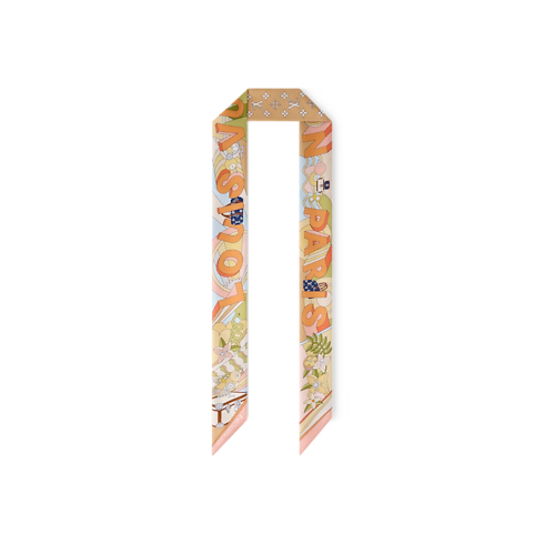 ผ้า Bandeau รุ่น LV Wonderland BB ผลิตจากผ้าไหมแท้ทั้งผืน ถ่ายทอดความสร้างสรรค์และงานฝีมืออันประณีตในสีสันสดใส ทิวทัศน์สไตล์ Futuristic บรรยากาศแฟนตาซี แต่ง Monogram Flower และผลงานกระเป๋าเดินทางสุดไอคอนิก พร้อมตัวอักษรชื่อเมซงขนาดใหญ่เอฟเฟ็กต์สามมิติ เติมเต็มเอกลักษณ์อันโดดเด่นให้กับแอคเซสเซอรี่ร่วมสมัยแสนหรูหรา