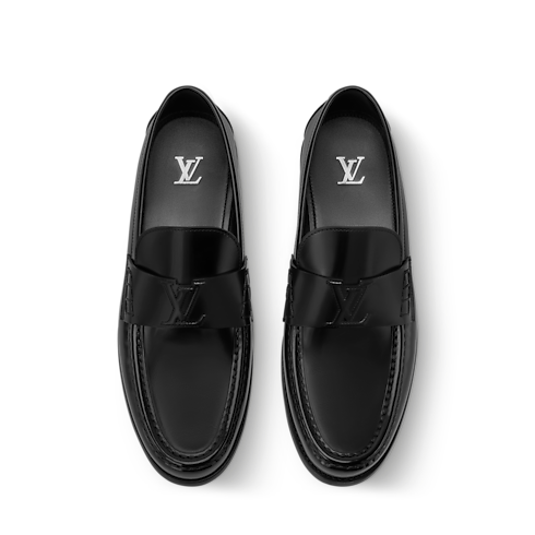 รองเท้าโลฟเฟอร์รุ่น Major สัญลักษณ์แห่งความสง่างามนำเสนอในรูปแบบใหม่ผ่านหนังลูกวัวเคลือบเงา สายคาดประทับอักษรย่อ LV แทนแอคเซสเซอรี่โลหะแบบเดิมเพื่อเพิ่มความโดดเด่น โครงสร้างรองเท้าแบบ Blake และการเย็บมือบริเวณตัวรองเท้า สะท้อนมาตรฐานสูงสุดของงานฝีมือหลุยส์ วิตตอง