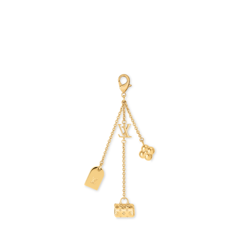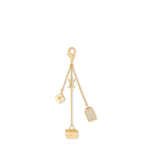 ชาร์มห้อยกระเป๋ารุ่น Mini Dangling LV Charms ผสานสไตล์ร่วมสมัยสง่างามเข้ากับสัมผัสอันเป็นตำนานดั้งเดิม สายโซ่แต่งชาร์ม 3 ชิ้นเปี่ยมเสน่ห์ได้แก่ กระเป๋าถือขนาดเล็กพิเศษลาย Monogram แท็กกระเป๋าเดินทางและเรซินประกายมุกลาย Monogram Flower เสริมสไตล์เฉพาะตัวให้กับทุกแอคเซสเซอรี่ สามารถใช้งานชิ้นเดียวหรือแมตช์กับไอเท็มในคอลเลกชัน LV Charms ได้ตามต้องการ
