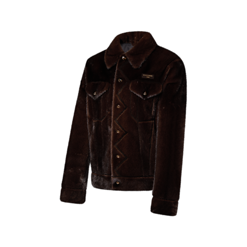 เสื้อแจ็คเก็ตขนมิงค์สุดหรูจากแฟชั่นโชว์คอลเลกชันประจำฤดูกาล Spring-Summer 2026 นำเสนอความประณีตเหนือระดับในสไตล์ Trucker ขนมิงค์แบบสามมิติเทคนิค Intarsia ในโทนสีน้ำตาล chestnut ถ่ายทอดแรงบันดาลใจจากโครงสร้างแจ็คเก็ตยีนส์สุดคลาสสิก เพิ่มความโดดเด่นสไตล์ dandy ด้วยแพตช์หนังที่กระเป๋าอกและกระดุมดีไซน์คล้ายหินควอตซ์