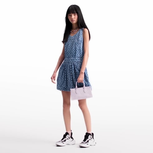 เดรสดีไซน์สดใสสำหรับเอวรี่เดย์ลุค ผ้าเดนิมเนื้อนุ่มน้ำหนักเบาประจำฤดูกาลพิมพ์ลาย Monogram ทั้งตัว ตะเข็บสีเหลืองตัดกันบริเวณอกเสริมโครงสร้างให้เด่นชัด ขณะที่จีบรอบช่วงเอวขับเน้นกระโปรงให้มีวอลลุมงดงาม ด้านหลังแต่งซิปเติมกลิ่นอายสปอร์ตแบบร่วมสมัยให้กับดีไซน์ได้อย่างลงตัว