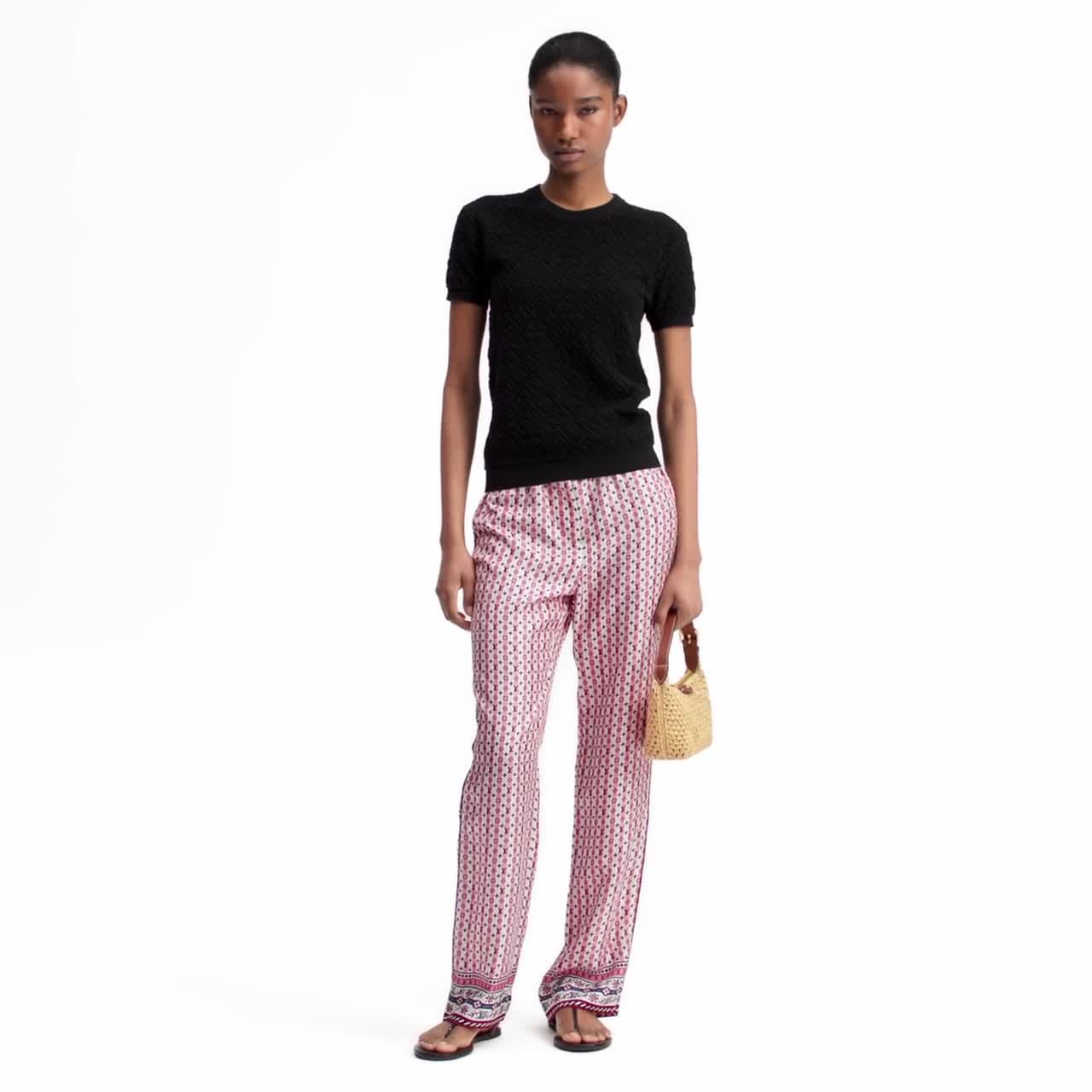 เสื้อที่ผ่านการปรับดีไซนน์ใหม่ให้มีชีวิตชีวาจากผ้า Toweling เนื้อนุ่มถักทอจากผ้าคอตตอนผสมผ้าวูล ประทับลาย Monogram Flower สุดไอคอนิกของเมซงทั้งตัวในโทนสีเดียวกันกลมกลืน ดีไซน์คอกลม แขนสั้น และชายเสื้อแต่งผ้าริบมอบกลิ่นอายสไตล์สปอร์ตมีระดับ