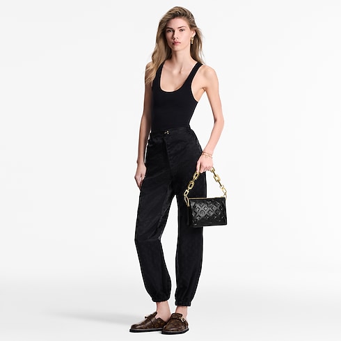 กางเกงจ๊อกกิ้งลาย Monogram ลุคแคชวลผิวสัมผัสเงางามจากคอลเล็คชั่นเสื้อผ้าสไตล์สปอร์ตสุดชิคตกแต่งลาย Monogram เอฟเฟ็กต์ Stencil ที่มีเอกลักษณ์ประจำฤดูกาล กางเกงจ๊อกกิ้งทรงหลวมพอดีตัวเติมเต็มดีไซน์ด้วยการแต่งแถบข้อเท้าอิลาสติกอย่างลงตัว