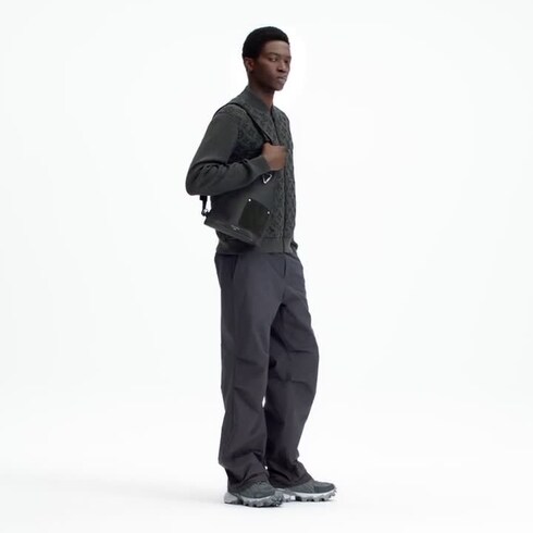 เสื้อแจ็ตบอมเบอร์ผ้าวูลถักสีเทาเข้ม คือไอเท็มอเนกประสงค์ที่สามารถใส่ได้ทั้งในร่มหรือสวมเป็นเสื้อคลุมชั้นนอกตัวบางแบบเลเยอร์ ตัวเสื้อบุนวมโดดเด่นด้วยลาย Monogram ทั้งตัว เพิ่มความสะดุดตาด้วยเทคนิคการถักสร้างเอฟเฟ็กต์ลายควิลต์แบบสามมิติ ไอเท็มมีสไตล์เติมเต็มเอวรี่เดย์ลุคให้สมบูรณ์แบบ