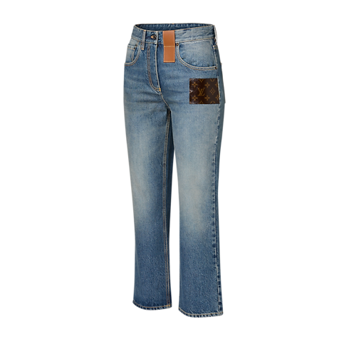 กางเกงยีนส์แต่งแพตช์ลาย Monogram