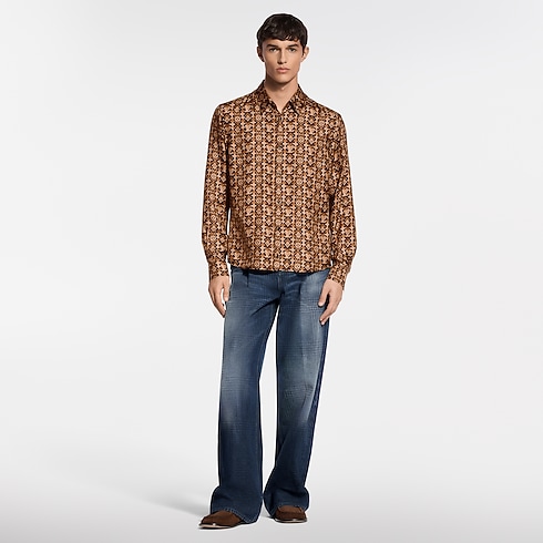 เสื้อเชิ้ตแขนยาวผ้าไหมพิมพ์ลาย Monogram