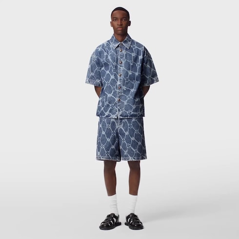 เสื้อเชิ้ตเดนิมแขนสั้นพิมพ์ลาย Monogram