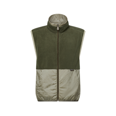 เสื้อกั๊กสุดโดดเด่นแบบใส่ได้ทั้งสองด้านมาในโทนสีเขียวอันหรูหรา รังสรรค์จากผ้าเทคนิคอลลาย Monogram เทคนิคแจ็คการ์ดทั่วทั้งตัว ด้านหนึ่งโดดเด่นด้วยการตัดต่อผ้าฟลีซสีเขียวบริเวณด้านบนส่วนรอยต่อระหว่างคอเสื้อกับตัวเสื้อ พร้อมเติมเต็มความอบอุ่นและสไตล์สปอร์ตแบบคัลเลอร์บล็อก เสื้อกั๊กที่สวมใส่ง่ายสร้างเลเยอร์ให้ลุคฤดูใบไม้ผลิได้ลงตัว พร้อมแฝงสัญลักษณ์อันโดดเด่นอย่างมีรสนิยม และเสริมความสง่างามให้กับคอลเลกชันที่เน้นโทนสีนุ่มนวลได้สมบูรณ์แบบ