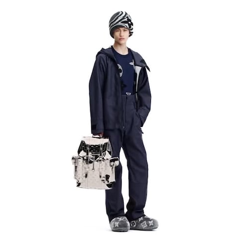 เสื้อคอกลมแขนสั้นผ้าคอตตอนออร์แกนิกผสมโทนสีน้ำเงินเข้มสไตล์กราฟิกเทคนิค Intarsia ตกแต่งลายสัญลักษณ์ LV และ Monogram Flower ขนาดใหญ่สะดุดตา ดีเทลปักประณีตคอนทราสต์โทนเดียวกันอันละเอียดอ่อนสื่อถึงความรู้ความชำนาญของช่างฝีมือของหลุยส์ วิตตอง ไอเท็มดีไซน์แคชวลสามารถปรับลุคเอาต์ดอร์ให้เป็นลุคที่สวมใส่ได้ทุกวัน เติมแต่งสัมผัสเอกลักษณ์สมบูรณ์แบบ
