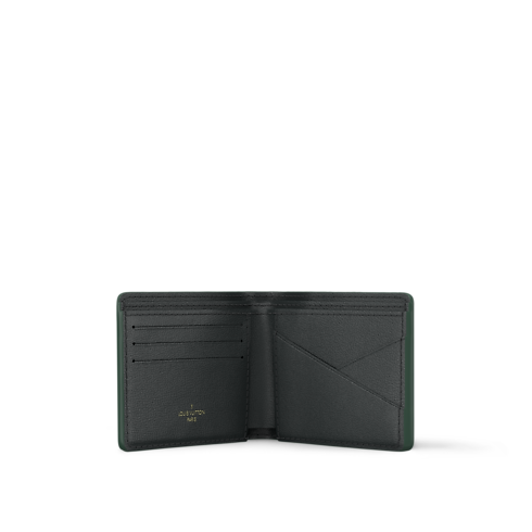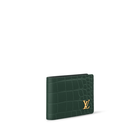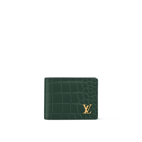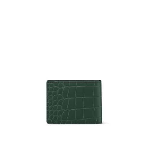 กระเป๋าสตางค์รุ่น Multiple ผลงานที่สร้างสรรค์ขึ้นจากสิ่งที่ Pharrell Williams ขนานนามว่า “Butter Crocodile” ซึ่งเป็นหนังจระเข้เนื้อนุ่มเป็นพิเศษ มอบสัมผัสหรูหราด้วยเฉดสีเข้มลุ่มลึก ลายเกล็ดอันโดดเด่นตกแต่งอักษรย่อ LV สีทองแบบวินเทจ ประดับหมุดเล็กๆ เติมความงามอย่างเรียบหรู ด้านในบุหนังแพะจับคู่โทนสีเดียวกัน มาพร้อมช่องใส่บัตรและช่องกระเป๋ามากมาย เพิ่มความสะดวกในการใช้งาน