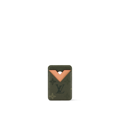 กระเป๋าใส่บัตรรุ่น Porte-Cartes Magnet รังสรรค์จาก Monogram Eclipse แคนวาสสีเทาดำและหนังคาวไฮด์สีสดใสที่ช่วยขับเน้นความโดดเด่นให้กับช่องใส่บัตรรูปตัว V กระเป๋าใส่บัตรมาพร้อมระบบแม่เหล็กในตัวเชื่อมเข้ากับ iPhone ทุกรุ่นที่รองรับฟังก์ชัน MagSafe ช่องใส่บัตรสามารถเก็บบัตรเครดิตและบัตรโดยสารได้เกือบทุกรูปแบบ