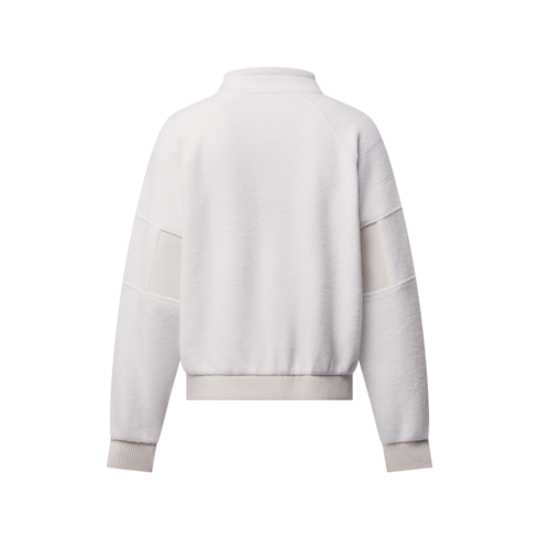 เสื้อแจ็คเก็ตบลูซงหรูหราสไตล์แคชวลได้แรงบันดาลใจจากเสื้อสไตล์เลานจ์แวร์ รังสรรค์จากผ้าวูลฟลีซโทนสีครีมคลาสสิกผิวสัมผัสนุ่มมอบความอบอุ่นยามเดินทาง ไอเท็มสไตล์สปอร์ตมาพร้อมคอปกทรงสูงมีเชือกรูดปรับได้และแขนเสื้อแบบ Raglan แต่งผ้าริบตรงข้อศอกมอบความสบายยามเคลื่อนไหว ตะเข็บแบบ Topstitching สร้างเอฟเฟ็กต์แบบควิลต์เท่สมาร์ทพร้อมปักสัญลักษณ์ LV บริเวณอก เลือกแมตช์กับกางเกงดีไซน์เดียวกันให้ลุคอุ่นสบายลงตัว