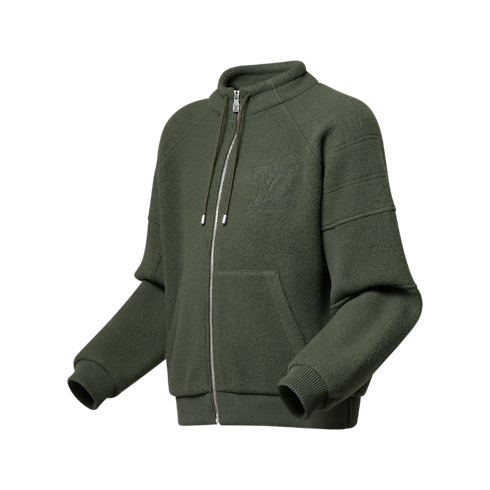 เสื้อแจ็คเก็ตบลูซงหรูหราสไตล์แคชวลได้แรงบันดาลใจจากเสื้อสไตล์เลานจ์แวร์ รังสรรค์จากผ้าวูลฟลีซโทนสีเขียว olive คลาสสิกผิวสัมผัสนุ่มมอบความอบอุ่นยามเดินทาง ไอเท็มสไตล์สปอร์ตมาพร้อมคอปกทรงสูงมีเชือกรูดปรับได้และแขนเสื้อแบบ Raglan แต่งผ้าริบตรงข้อศอกมอบความสบายยามเคลื่อนไหว ตะเข็บแบบ Topstitching สร้างเอฟเฟ็กต์แบบควิลต์เท่สมาร์ทพร้อมปักสัญลักษณ์ LV บริเวณอก เลือกแมตช์กับกางเกงดีไซน์เดียวกันให้ลุคอุ่นสบายลงตัว