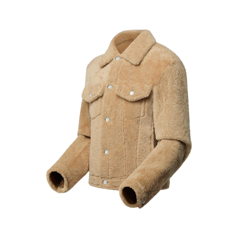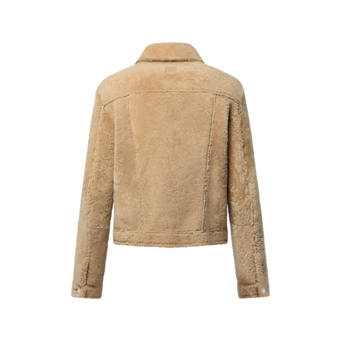 เสื้อแจ็คเก็ตสไตล์ Trucker สุดคลาสสิก รังสรรค์จากขนแกะนุ่มสบายโทนสีเบจที่สวมใส่ได้หลายโอกาส ด้านในคอเสื้อ กระเป๋า ข้อมือ และชายเสื้อตกแต่งแพตช์หนัง Napa เนื้อนุ่มประทับลาย Monogram เติมแต่งกลิ่นอายสุดเท่ด้วยการประดับกระดุมเอฟเฟ็กต์ไข่มุกสลักสัญลักษณ์หลุยส์ วิตตอง และด้านหลังแต่งป้ายเลเบลหนัง Marque L.Vuitton Déposée