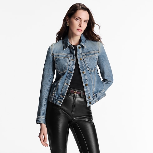 เสื้อแจ็คเก็ตผ้าเดนิมคอตตอนออร์แกนิกตัวเก่งใส่ได้ทุกวันมาในทรงเข้ารูปสุดชิค การเย็บตะเข็บสีเหลืองคลาสสิกเน้นโครงสร้างให้เด่นชัด ด้านหน้าประดับกระดุม Louis Vuitton Paris สีเงิน พร้อมแต่งดีเทลตะเข็บแบบ top stitch รูปตัว V ที่กระเป๋าเสื้อด้านหน้า เสริมเอกลักษณ์ประณีตของเมซงได้อย่างสมบูรณ์แบบ