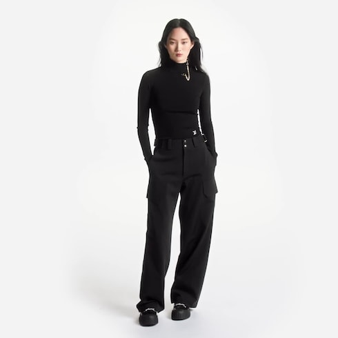 ไอเท็มพื้นฐานที่ควรมีติดตู้เสื้อผ้า ยกระดับเสื้อสเวตเตอร์คอเต่าผ้าวูลเนื้อนุ่มผสมผ้าไหมด้วยซิปและหัวซิปสีทองแบบอสมมาตรคล้องกับสายโซ่หรูหราช่วงคอเสื้อ ไอเท็มสวมสบายแนบกระชับราวกับผิวหนังชั้นที่สอง เพิ่มเอกลักษณ์ความเป็นหลุยส์ วิตตองด้วยอักษรย่อ LV สีตัดกันที่ชายเสื้อ