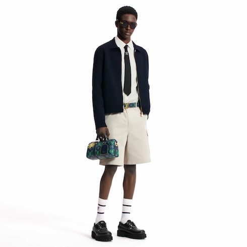 กางเกงคาร์โก้ขาสั้นผ้าคอตตอนสีเบจละมุนสไตล์ Workwear ดีไซน์มีระดับสวมใส่ได้หลายฤดูกาล เติมแต่งลูกเล่นสัมผัสโดดเด่นด้วยกระเป๋าคาร์โก้ปักสัญลักษณ์ข้างละ 1 ช่อง เหนือกระเป๋าหลังข้างขวาประดับแพตช์สัญลักษณ์ Louis Vuitton Malletier กระดุมเอฟเฟ็กต์มาเธอร์ออฟเพิร์ลเสริมกลิ่นอายหรูหราให้กับไอเท็มสไตล์เหนือกาลเวลาที่ควรมี