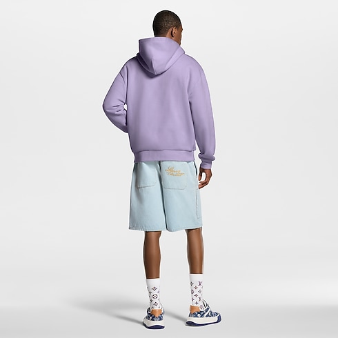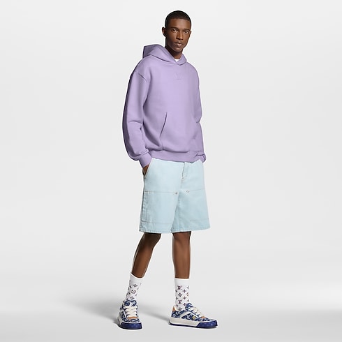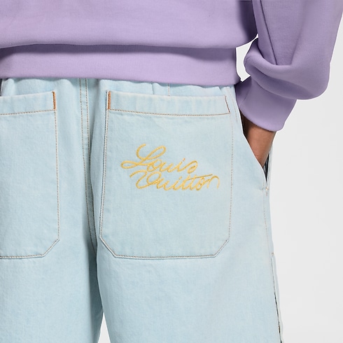 กางเกงขาสั้นสไตล์ Workwear สำหรับฤดูร้อนรังสรรค์จากเดนิมออร์แกนิกสีน้ำเงิน Indigo ฟอกอ่อน ถ่ายทอดความหรูหราสไตล์แคชวลของคอลเลกชันได้อย่างสมบูรณ์แบบ เสริมความมีระดับด้วยลายปักอักษร Louis Vuitton สไตล์ตัวเขียนสีทองบนกระเป๋าหลัง และตกแต่งด้านหน้าด้วยหมุด Monogram Flower งดงาม ปิดท้ายด้วยดีเทลเดินตะเข็บสีน้ำตาล Tobacco และกระดุมไข่มุกสุดชิค สวมคู่กับเสื้อแจ็คเก็ตบลูซงที่เข้าชุดเพื่อสร้างลุคประจำฤดูกาลสุดสมบูรณ์แบบ