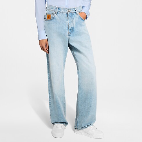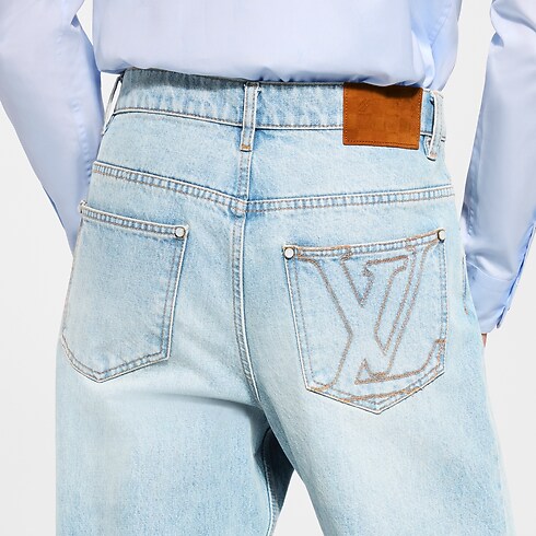 กางเกงยีนส์ผ้าเดนิมญี่ปุ่นคุณภาพพรีเมียมทรง Skate Fit ยกระดับไอเท็มคลาสสิกที่ต้องมีติดตู้เสื้อผ้าด้วยความเชี่ยวชาญด้านการตัดเย็บของหลุยส์ วิตตอง สีน้ำเงินอ่อนฟอกคลาสสิกและรูปทรงที่โดดเด่นจับคู่แมตช์ลงตัวกับทุกลุค ตกแต่งดีเทลสุดเอ็กซ์คลูซีฟประกอบด้วยการเดินตะเข็บแบบ top stitch โทนสีน้ำตาล Tobacco ลายปักสัญลักษณ์ LV บนกระเป๋าหลัง และแพตช์หนังนูบัคประดับสัญลักษณ์บนกระเป๋าเล็กและขอบเอว