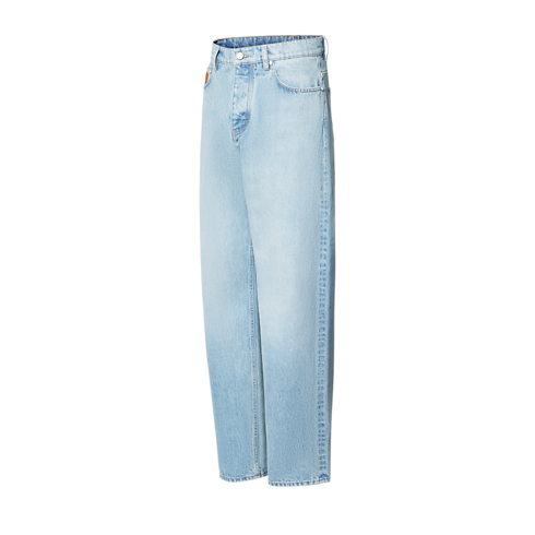 กางเกงยีนส์ผ้าเดนิมญี่ปุ่นคุณภาพพรีเมียมทรง Skate Fit ยกระดับไอเท็มคลาสสิกที่ต้องมีติดตู้เสื้อผ้าด้วยความเชี่ยวชาญด้านการตัดเย็บของหลุยส์ วิตตอง สีน้ำเงินอ่อนฟอกคลาสสิกและรูปทรงที่โดดเด่นจับคู่แมตช์ลงตัวกับทุกลุค ตกแต่งดีเทลสุดเอ็กซ์คลูซีฟประกอบด้วยการเดินตะเข็บแบบ top stitch โทนสีน้ำตาล Tobacco ลายปักสัญลักษณ์ LV บนกระเป๋าหลัง และแพตช์หนังนูบัคประดับสัญลักษณ์บนกระเป๋าเล็กและขอบเอว