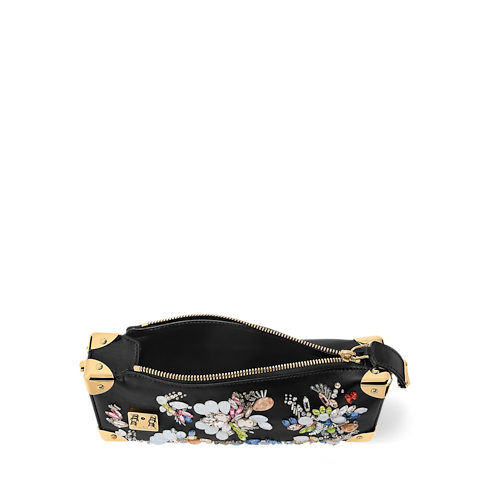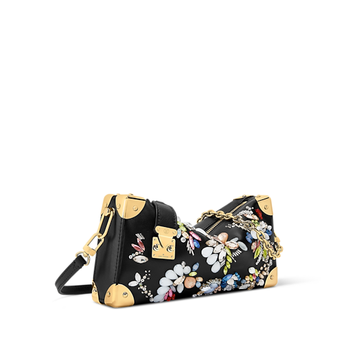 กระเป๋ารุ่น Slim Trunk สุดโดดเด่นนี้จากคอลเลกชัน Eden Embroideries ประดับด้วยอัญมณีและคริสตัลหลากสี รังสรรค์จากหนังลูกวัวสีดำแสนคลาสสิก ตกแต่งขอบด้วยหนังวัวและมุมกระเป๋าเคลือบสีทอง พร้อมตัวล็อกแบบ S-lock และสายโซ่เพิ่มความหรูหราเหนือระดับ เหมาะสำหรับค่ำคืนแสนพิเศษ สามารถเลือกถือแบบคลัตช์หรือสะพายด้วยสายยาวได้อย่างมีสไตล์