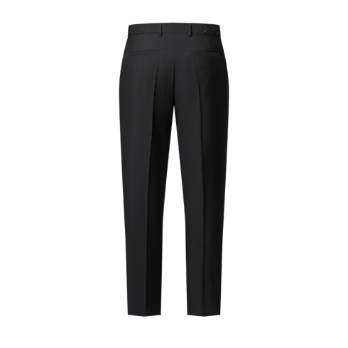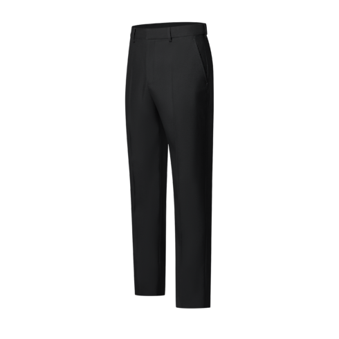 กางเกงทางการผ้าวูลสีดำทรงสลิมฟิตสุดเท่สำหรับงานกลางคืน ครีเอตลุคชุดสูทแบบทางการเปี่ยมสไตล์โดดเด่น บริเวณเอวด้านหลังประดับป้ายเลเบลทอสัญลักษณ์ Marque L.Vuitton Déposée โทนสีเดียวกัน ไอเท็มชิ้นหลักคลาสสิกจากคอลเลคชั่นเสื้อผ้าบุรุษแมตช์กับเสื้อผ้าแบบเทเลอร์หรือจับคู่กับชุดสูทในดีไซน์ที่แตกต่างจากคอลเลคชั่นเดียวกันได้อย่างลงตัว